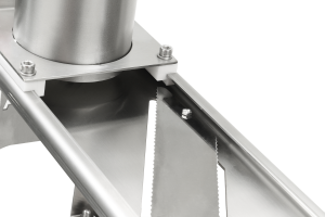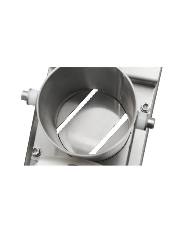1320 mandolin kesme makinesi; ayarlanabilir tırtıklı bıçaklarıyla sebze ve meyveleri 1,5mm’den 6,5mm’ye kadar eşit şekilde keser. Endüstriyel mutfaklara özel.