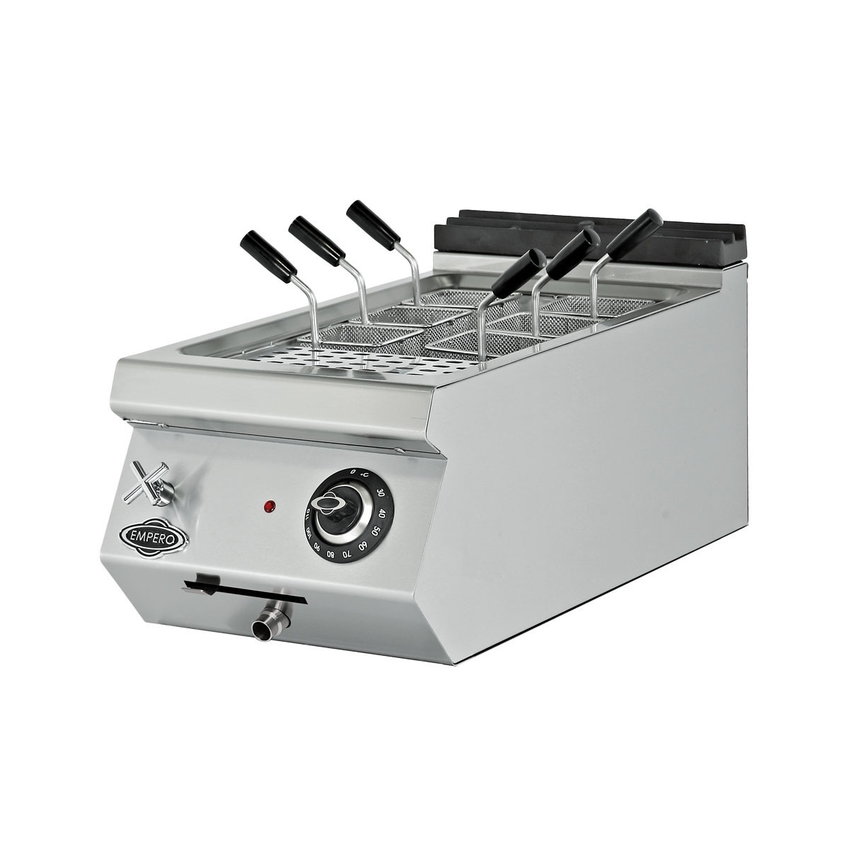 Empero EMP.PLS.7ME010 Elektrikli Makarna Haşlama, 10,5 litrelik kapasitesi, termostatik kontrolü ve paslanmaz çelik yapısıyla profesyonel mutfaklarda hızlı ve verimli makarna haşlama imkanı sunar.
