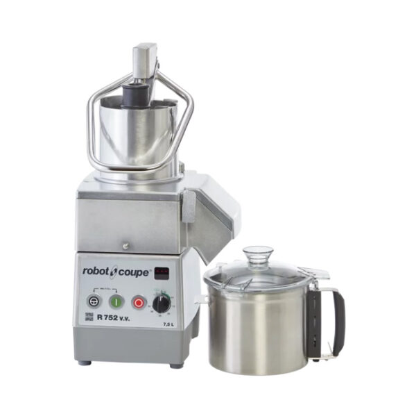 Robot Coupe R 752 V.V., hem parçalayıcı hem sebze doğrayıcı olarak çok yönlü kullanım sunan profesyonel mutfak robotudur.